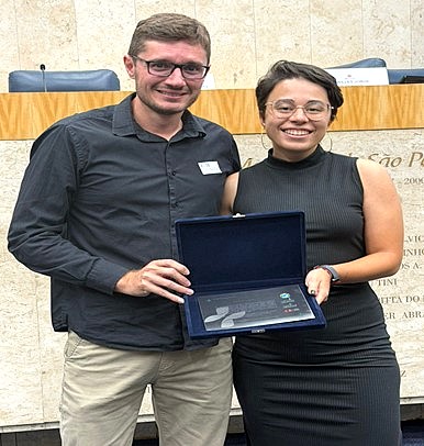 A aluna Giovanna Albanez, do 8º Termo do Curso de Biomedicina do Centro Universitário de Ourinhos – Unifio, (www.unifio.edu.br), foi premiada em 4º lugar em todo Estado de São Paulo, com o seu trabalho de conclusão de Curso, intitulado Diagnóstico Molecular do Helicobacter pylori em amostras de Biópsia Gástrica de Pacientes Dispéticos, orientado pelo docente do Curso, o biomédico e pesquisador professor Dr. Lucas Trevizani Rasmussen, que também estava presente no Plenário para premiação da aluna.