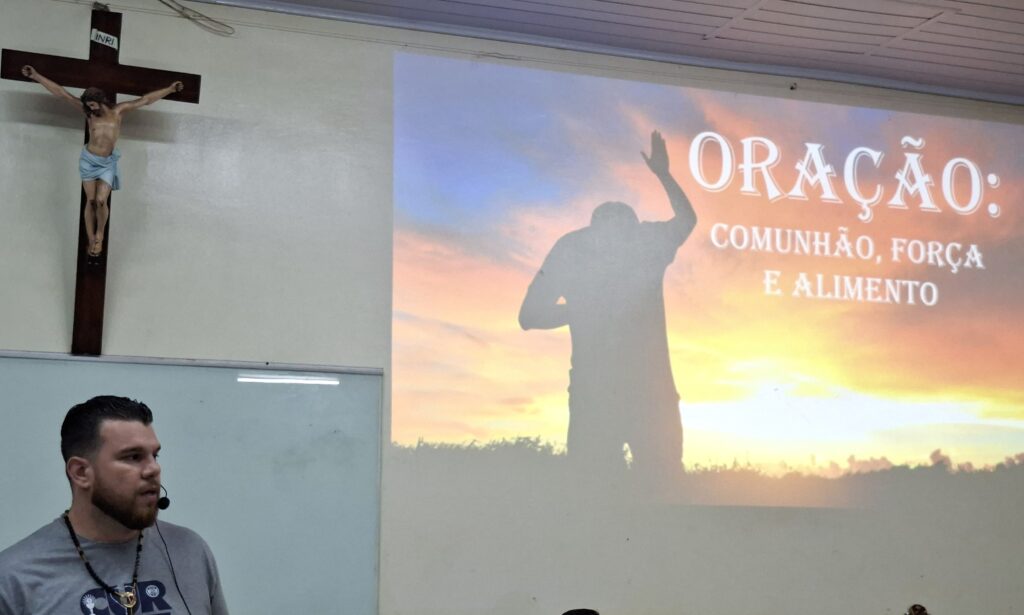 REUNIÃO DE SEGUNDA-FEIRA – Foi o que aconteceu na última segunda-feira, 27, em que o jovem Filipe Machado fez uma mensagem e mostrou o significado e a importância da Oração.