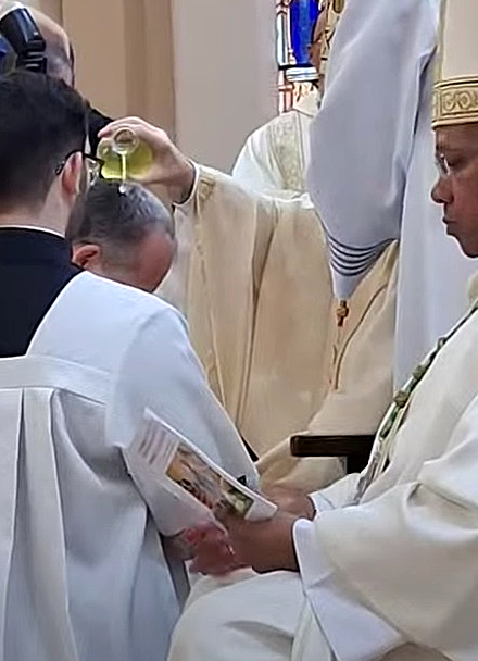 A cabeça do novo bispo foi ungida com o Óleo do Crisma, foram entregues o Livro dos Evangelhos, o Anel, a Mitra e o Báculo ao novo pastor.