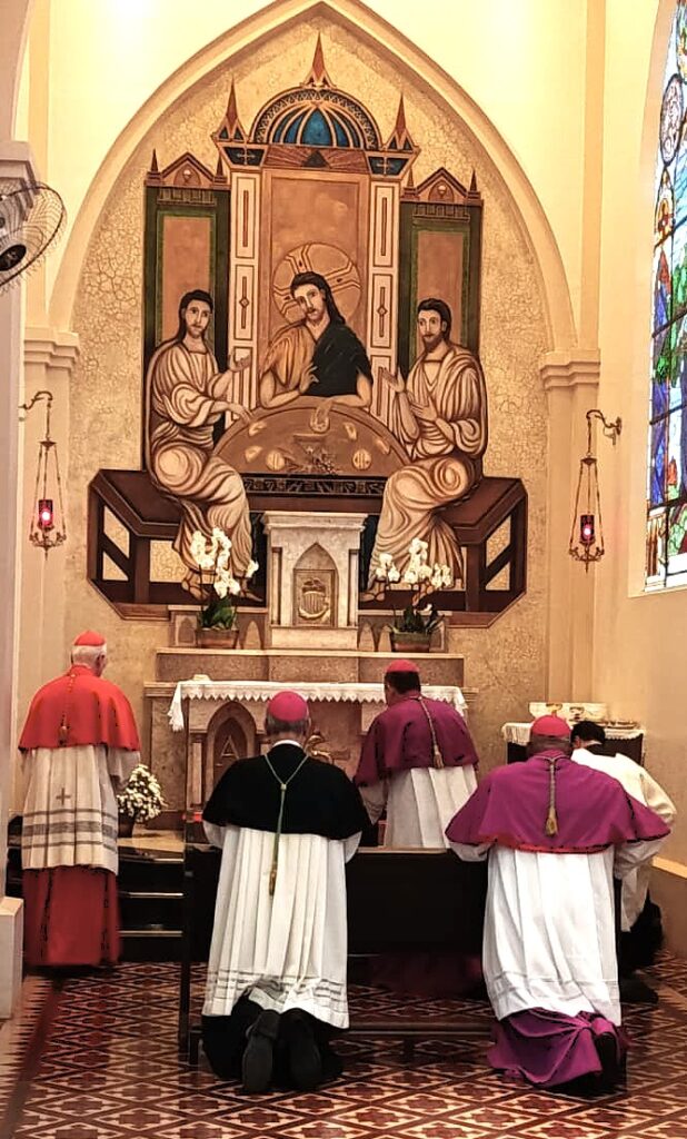 Depois abençoou os religiosos e fiéis presentes dentro da Catedral, em seguida caminhou e abençoou todo o povo que o assistia na praça.
