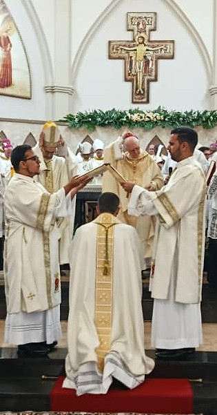 Logo após, foi feita a prece de ordenação com o livro dos Evangelhos sobre sua cabeça de Dom Celso.