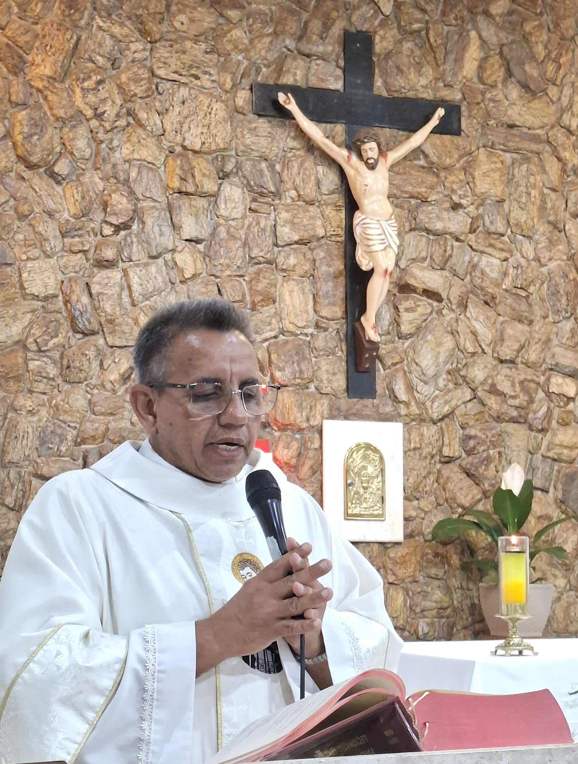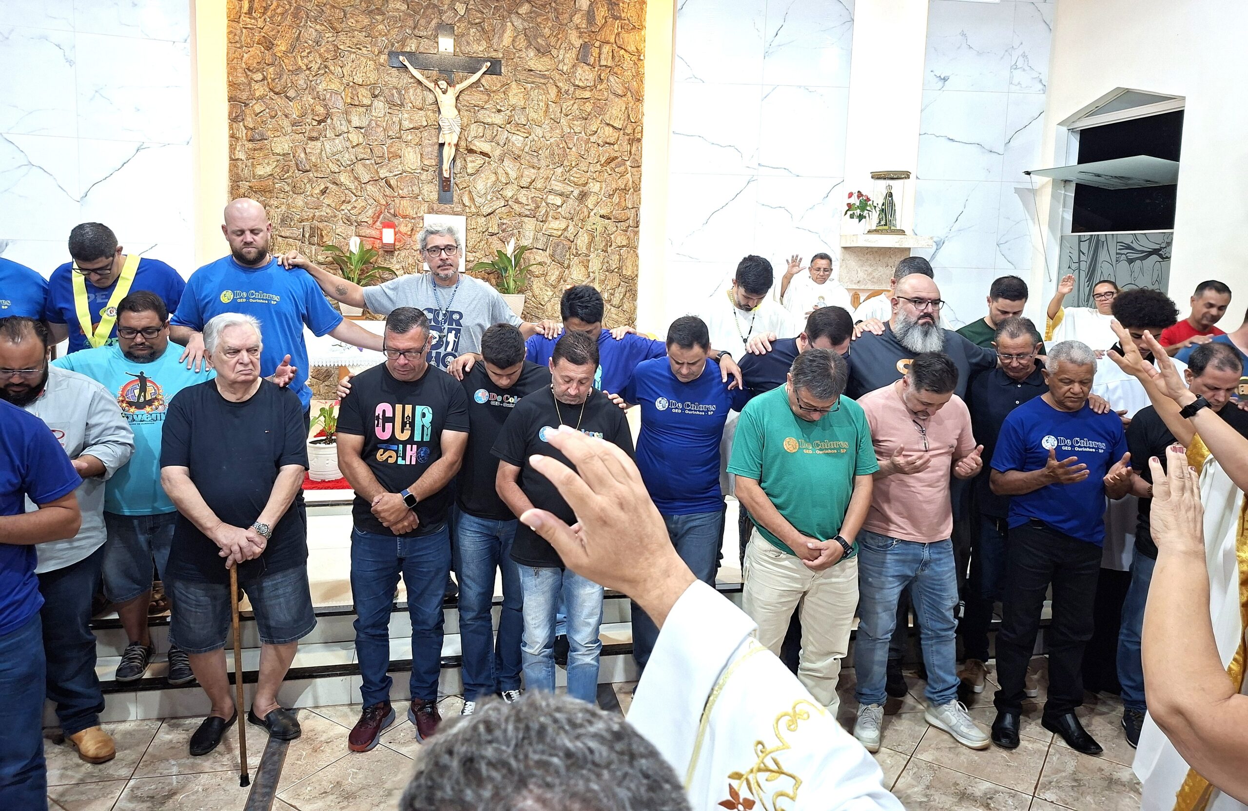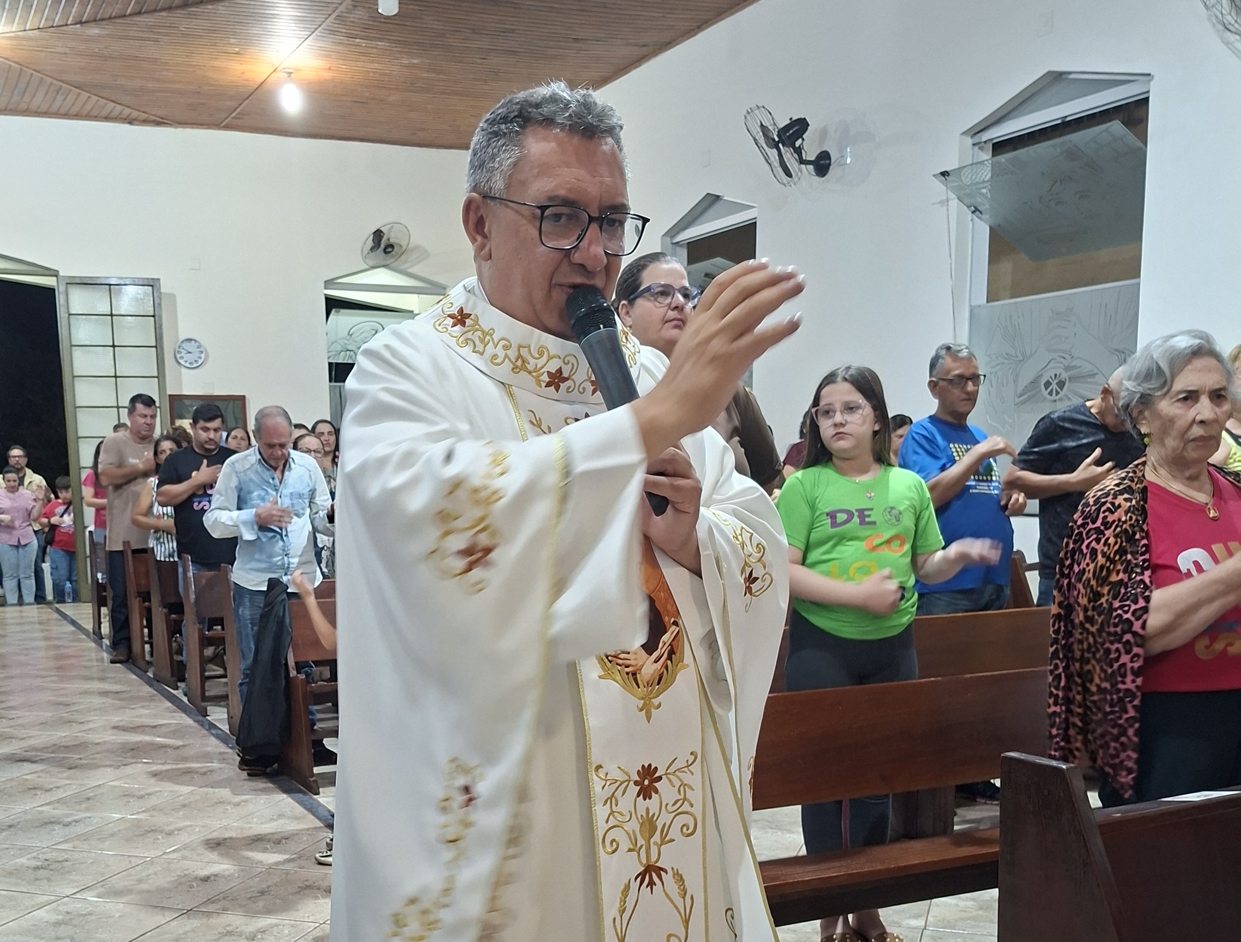 Padre Aguinaldo acolheu calorosamente os cursilhistas e a celebração também foi de envio aos homens que irão servir no Cursilho masculino no próximo fim de semana.