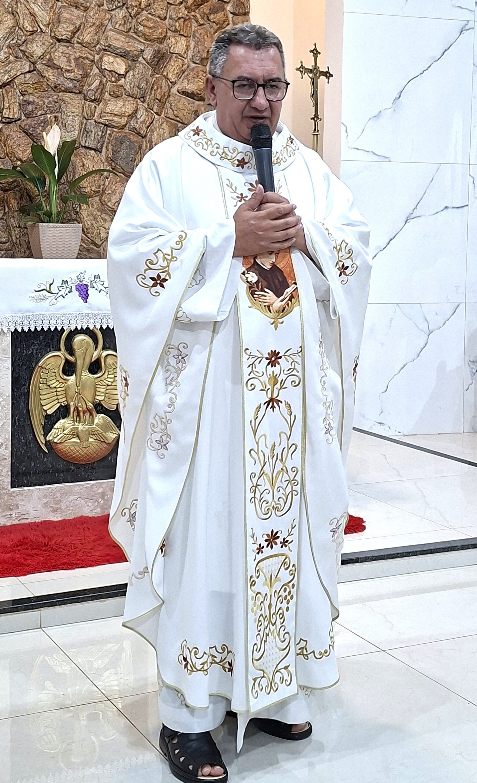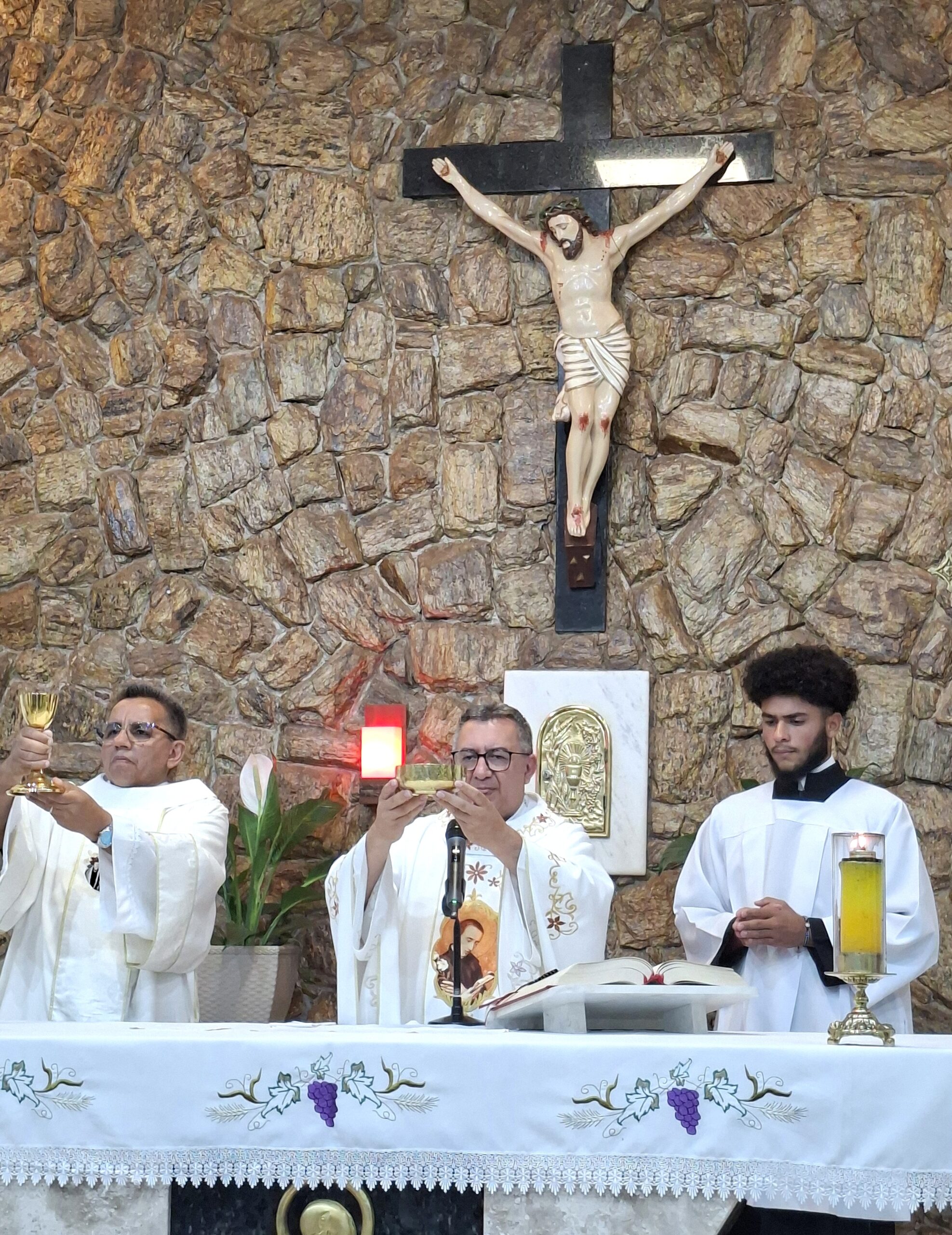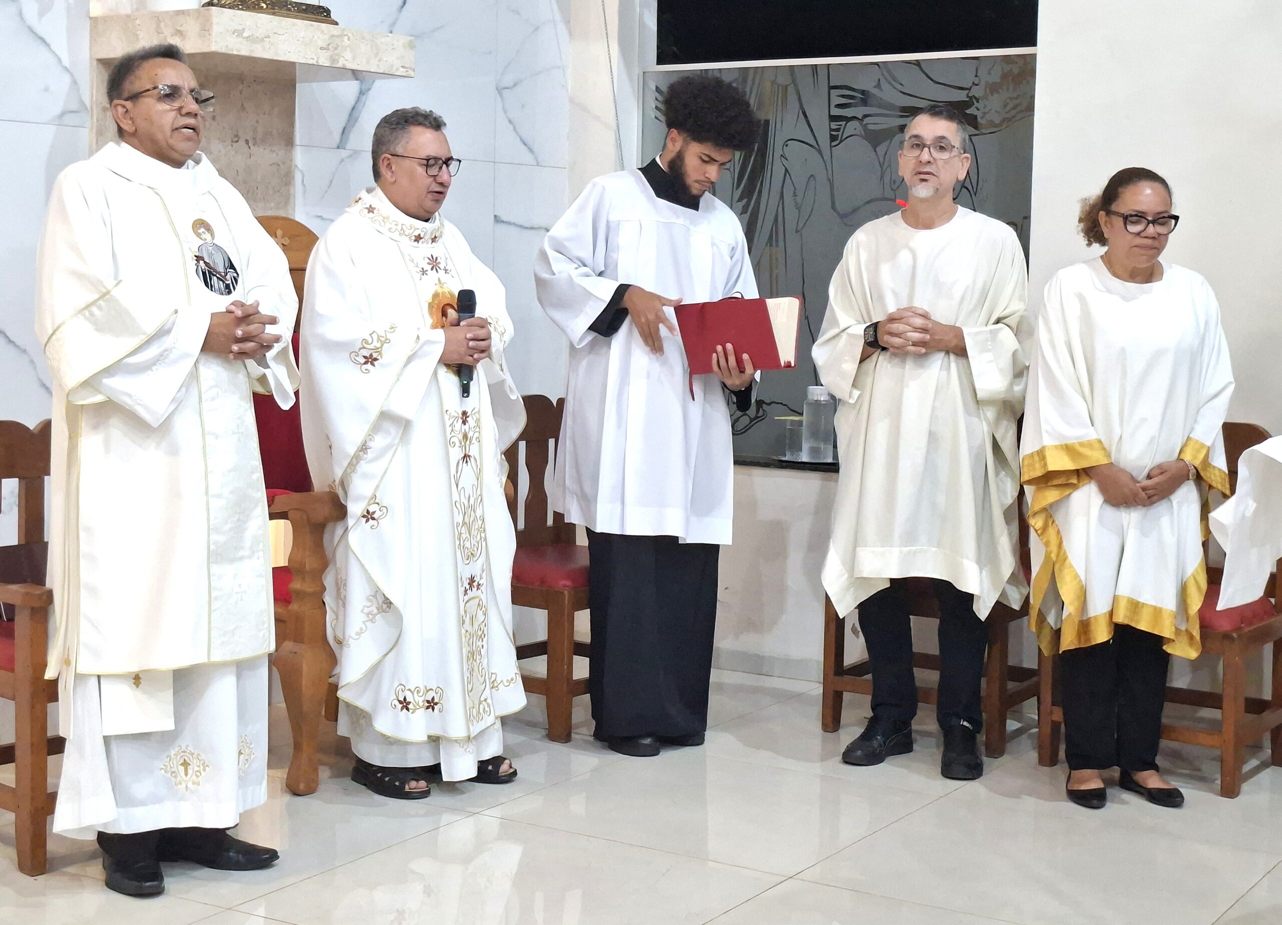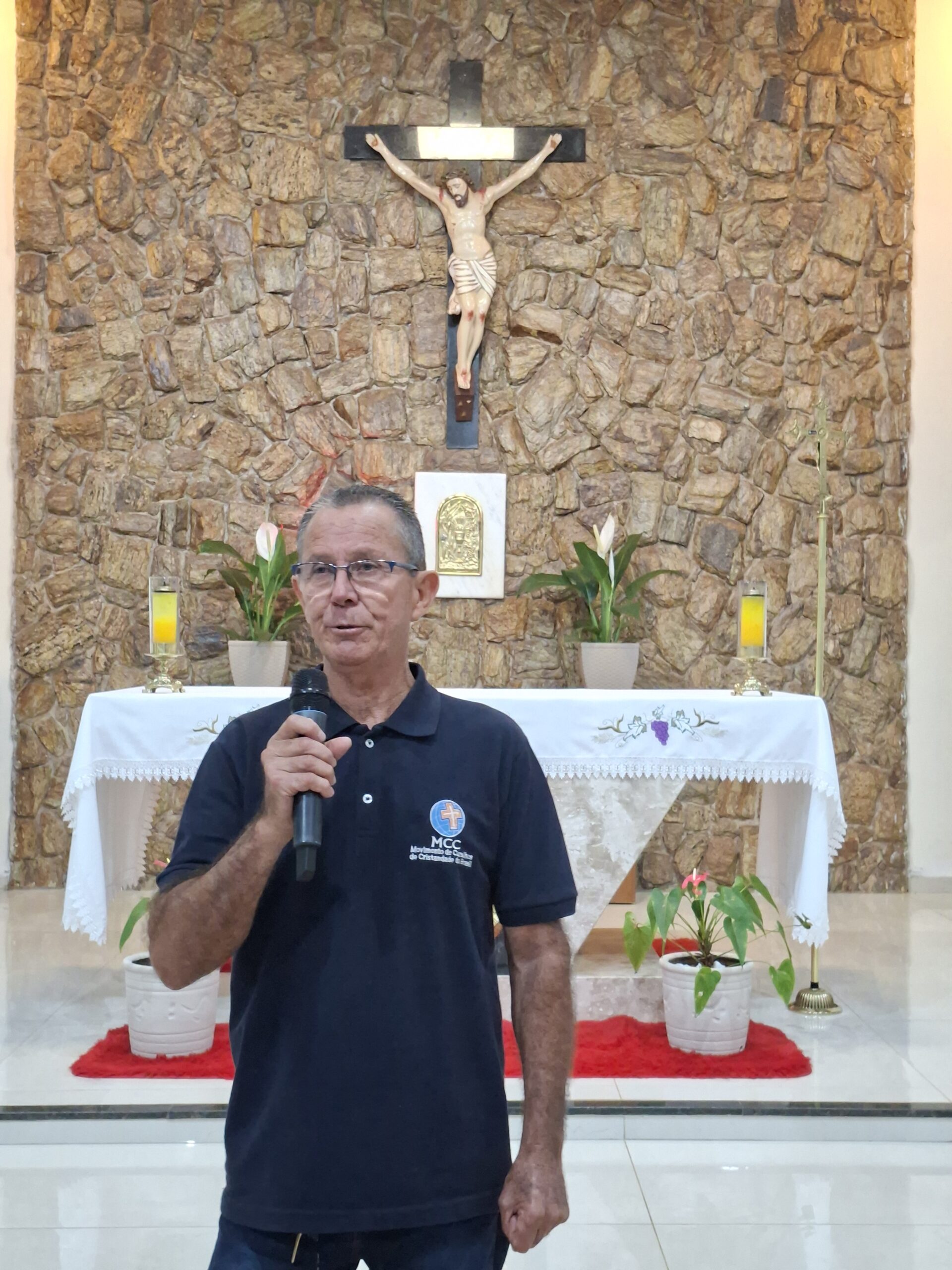 Padre Aguinaldo acolheu calorosamente os cursilhistas e a celebração também foi de envio aos homens que irão servir no Cursilho masculino no próximo fim de semana.