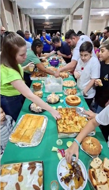 Após os cursilhistas se reuniram no salão de festas para sua tradicional confraternização mensal.