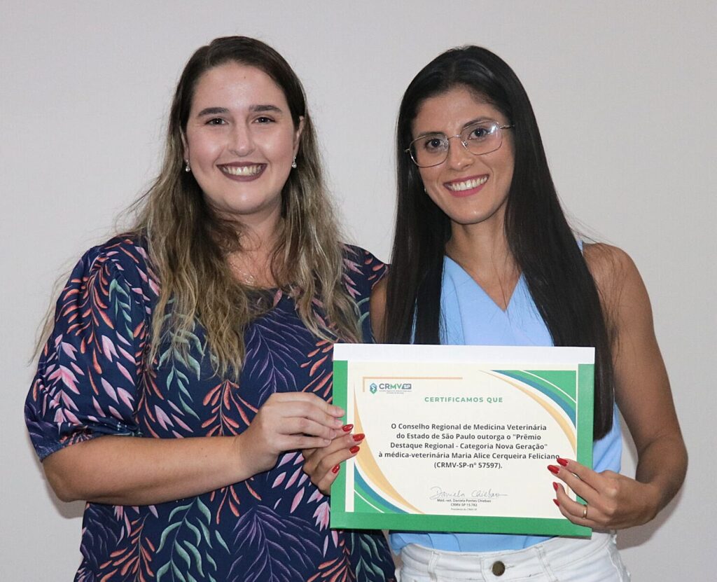 “Recentemente, recebi o prêmio Destaque Regional na Categoria Nova Geração pelo CRMV-SP na cidade de Marília e estou muito feliz em compartilhar essa conquista, que reflete todo o meu esforço e amor pela medicina veterinária. Cuidar de um animal é também cuidar de quem o ama. Agradeço a Deus, por tudo que Ele é na minha vida e ao meu esposo por ser meu maior incentivador”, prosseguiu a veterinária.