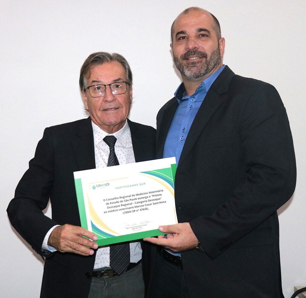 A homenagem aconteceu na quarta-feira, 25 de março, em Marília, durante a segunda edição do “CRMV-SP Destaque Regional”, iniciativa que leva palestras técnicas a diferentes regiões do interior paulista e reconhece profissionais locais.