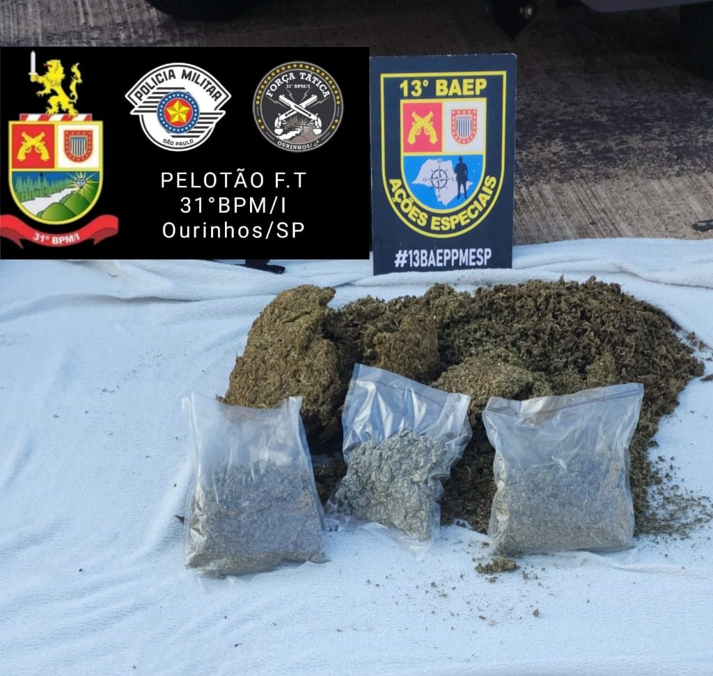 Na madrugada desta segunda-feira (25) em operação conjunta de combate ao tráfico de drogas, policiais da Força Tática do 31º BPM/I, Tático Ostensivo Rodoviário (TOR) e K9 do 13º BAEP, abordaram na Rodovia Engenheiro João Batista Cabral Renó (SP 225) em Santa Cruz do Rio Pardo, um ônibus vindo de Ponta Porã (MS) com destino a São Paulo capital. Um homem de nacionalidade paraguaia foi preso em flagrante por tráfico de drogas, já que ele trazia em sua bagagem, 7.7Kg de skunk.