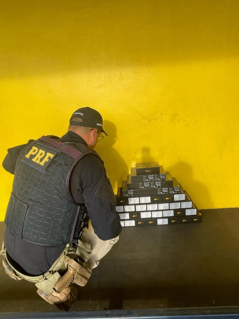 No VW/POLO, cor branca, que trafegava pela BR 153, estavam condutor e acompanhante, ambos com 36 anos de idade. Eles informaram que vinham de Foz do Iguaçu/PR e que realizaram compras no Paraguai e tinham como destino a capital paulista. No porta-malas foram encontrados 43 celulares da marca POCO. A carga foi avaliada em R$ 110.000,00.
