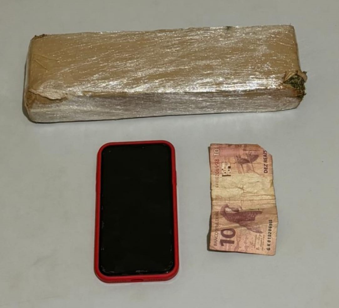Um tijolo de maconha pesando 919g, que foi arremessado pela janela do carro no trajeto de fuga foi localizado e a menor infratora, em entrevista forneceu dados acerca de seus comparsas que se evadiram.