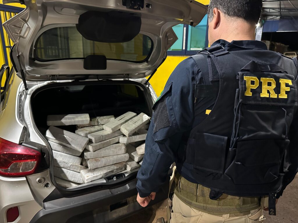Os PRF s encontraram no porta-malas do veículo diversos tijolos maconha que resultaram em 134 quilos. A verificarem o veículo, também descobriram que usava placas clonadas.