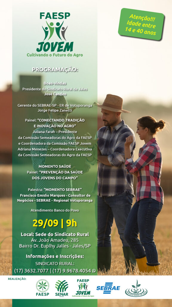 A Faesp Jovem, uma comissão da Federação da Agricultura e Pecuária do Estado de São Paulo, estará nesta segunda-feira (29/09) em Jales, em uma jornada de aprendizado e troca de experiências no encontro “Cultivando o Futuro do Agro”.