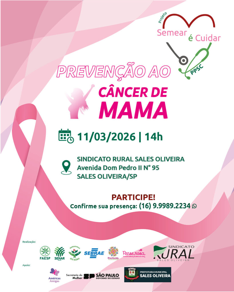 O lançamento ocorre às 14h, no Sindicato Rural de Sales Oliveira, avenida Dom Pedro II, 95. O projeto reflete o compromisso com o bem-estar e a qualidade de vida das mulheres do campo, proporcionando prevenção, informação e uma rede de apoio essencial em momentos delicados.