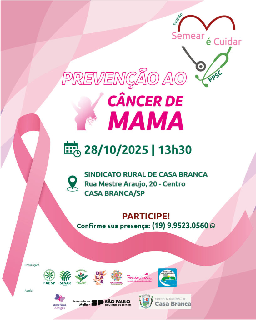 O lançamento ocorre às 13h30, no Sindicato Rural de Casa Branca, rua Mestre Araujo, 20, Centro. O projeto reflete o compromisso com o bem-estar e a qualidade de vida das mulheres do campo, proporcionando prevenção, informação e uma rede de apoio essencial em momentos delicados.