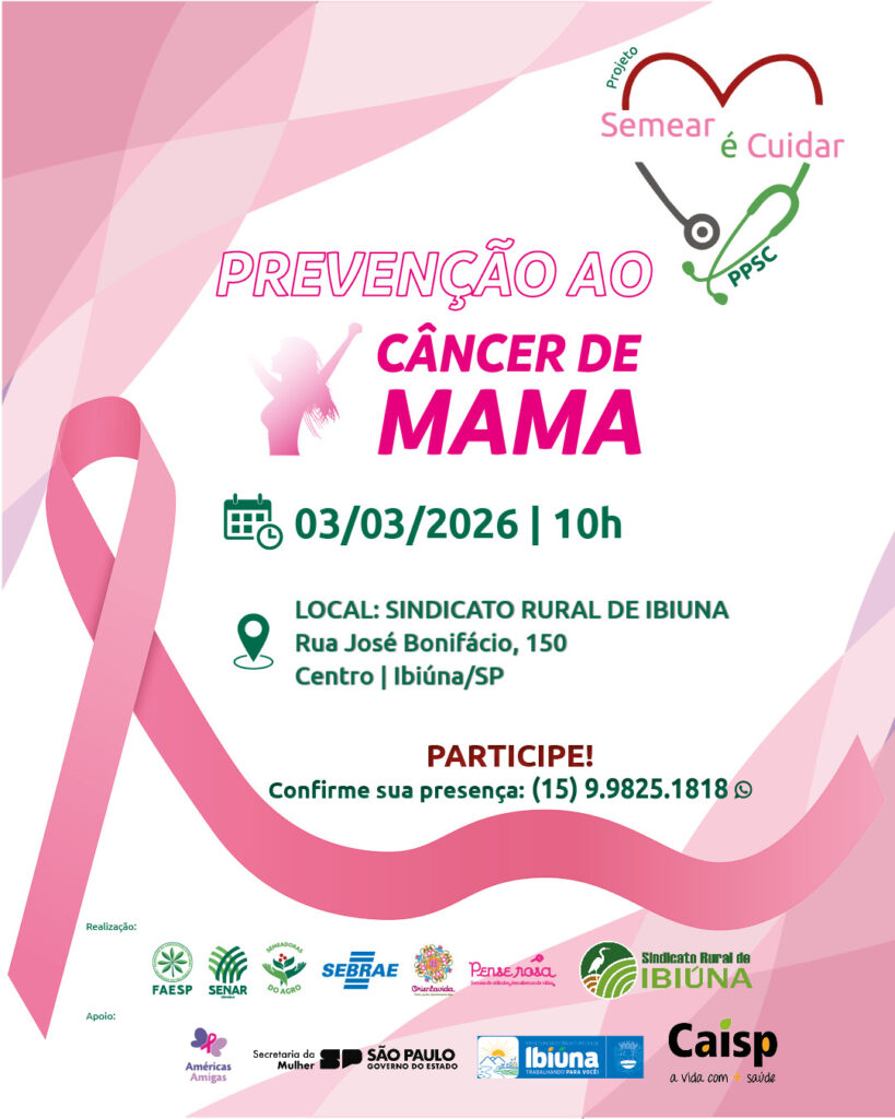 O projeto “Semear é Cuidar” será lançado na terça-feira (03/03), na cidade de Ibiúna. A iniciativa é uma extensão do Programa Promovendo Saúde no Campo (PPSC/Senar-SP), realizado pela Comissão Semeadoras do Agro, da Federação da Agricultura e Pecuária do Estado de São Paulo (Faesp), em parceria com o Sindicato Rural da cidade, a ONG Orientavida e com o Governo do Estado de São Paulo.