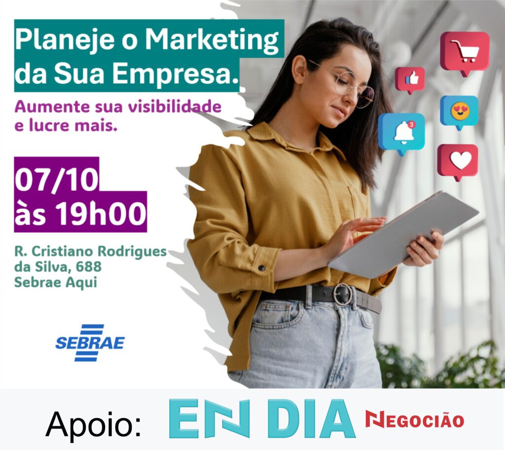 O Sebrae-SP realiza na terça-feira, 7 de outubro, às 19h, a oficina “Planeje o Marketing da Sua Empresa”, voltada para empresários que desejam impulsionar seus negócios por meio de estratégias de marketing práticas e acessíveis. O evento ocorrerá no Sebrae Aqui de Ipaussu, que fica na Rua Cristiano Rodrigues da Silva, 688.